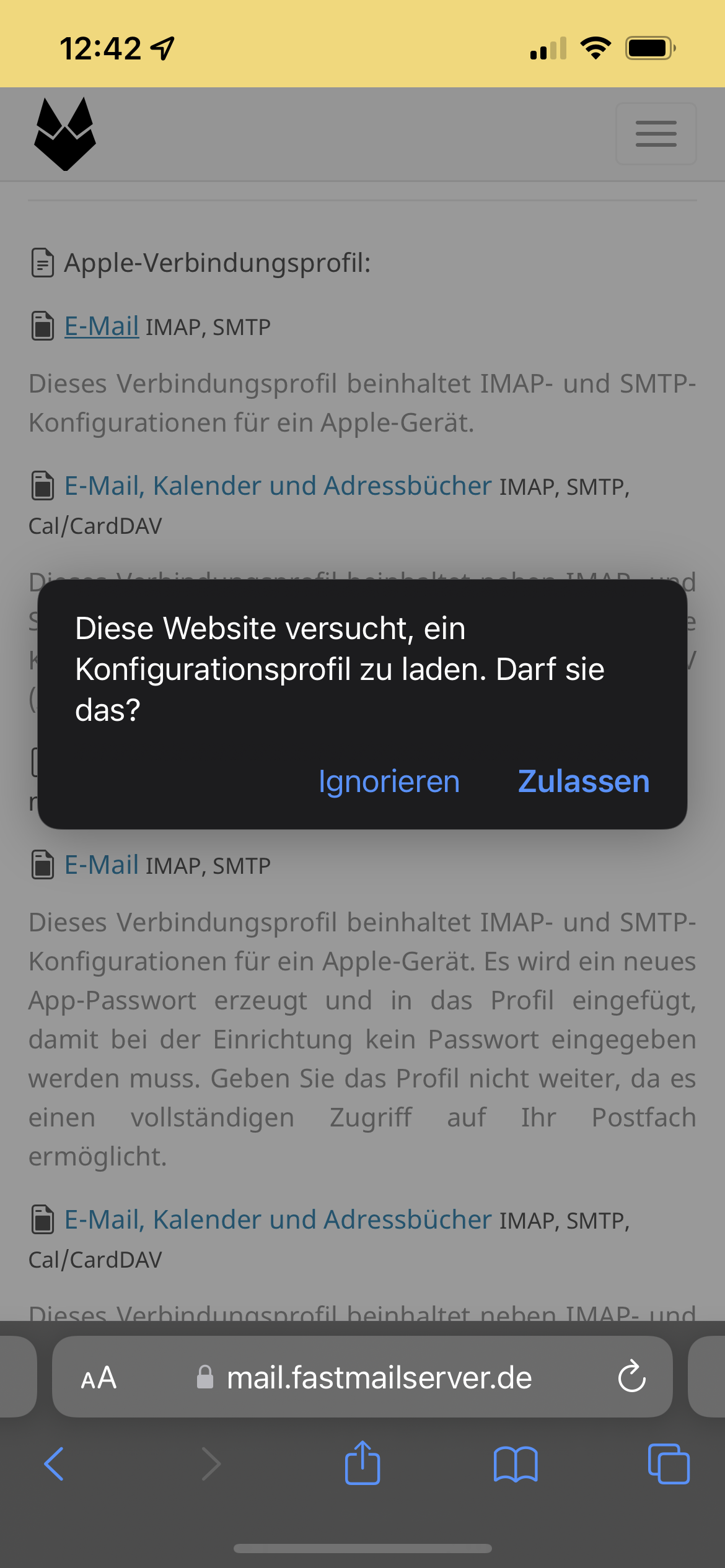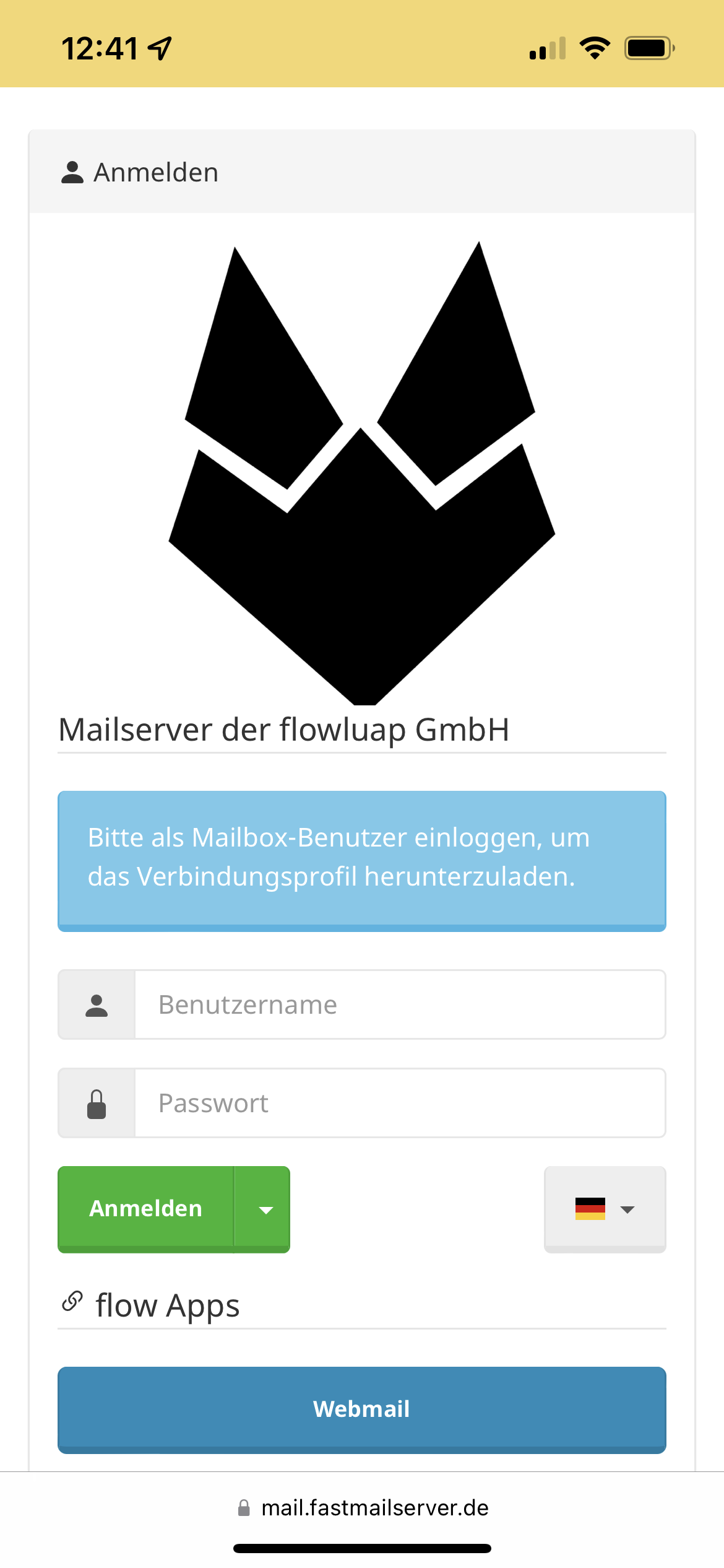 Lade Deine "mobileconfig" unter https://mail.fastmailserver.de/mobileconfig.php herunter:
